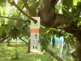 おいしい多摩川梨は8月上旬より9月下旬まで味わえます。 今年の梨販売9/20で終了いたしました。 また来年もよろしくお願いいたします。 来年は今年ほど高温・少雨(異常気象)でありませんように願います。 ★あきづき梨はコルク状果肉障害という生理障害が発生する場合があります これは外見からは判別がつきません、昨年より暑い今年はその症状が 多そうです。 見た目は悪いですが食べても問題ありません安心してご賞味ください。 ご理解のほどよろしくお願いいたします。 家族労働(自分と妻の2人)なので、もぎとりは、致しておりません。 他の梨園を紹介いたします。 営業時間9:00〜12:00(昼休憩)13:30〜18:00 店頭には可愛いい看板娘で対応しています。 新高は高温障害が出て6〜7割の新高を廃棄することとなりました 新高の木とサヨウナラしたので新高は無くなりました。 ☆2024年よりインボイス対応により消費税を頂くことになりました。 いろいろ値上げの時代ですがよろしくお願いいたします。 ここ何年か幸水・豊水の木(新植して40年以上経ち)がダメになってきて、 抜根し収穫量が少なくなりご迷惑をお掛け致します。 梨の害虫ハダニ類に対する ↓ 梨シンクイ虫コンフューザー ↓ 天敵カブリダニ類を活用した シンクイ虫性フェロモンの特異 ダニの抑制。 的作用によって対象害虫の交尾 (袋の中にカブリダニが入って を連続的に阻害し、害虫の発生 います)。 を抑制します。 どちらも梨の消毒を減らすための取り組みの一つです。